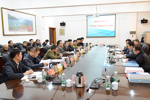 本网讯 11月9日上午,省教育厅“平安高校”建设及综治工作考评组组长、长沙理工大学副校长刘扬一行来校,对我校2016年度“平安高校”建设及综治工作进行考评。校党委书记陈弘、校长曾宝成及其他在校领导唐艳明、宋宏福、郑山明、李常健、吴小林、程智开、袁先友出席汇报会。
