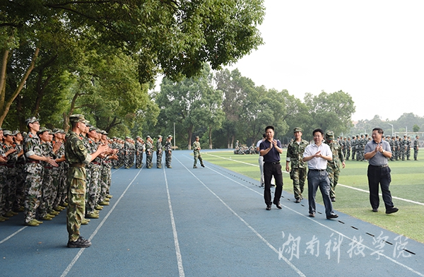 本网讯一抹抹跃动的军绿色为秋日的校园增添勃勃生机与活力,嘹亮有力的口号声训练场上空不断回荡。9月20日下午,校长曾宝成、副校长程智开一行前往学校各个训练场地看望慰问全体军训教官和参训的2016级新生。