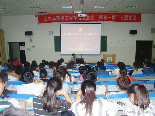 5月30日晚,党委委员、副校长郑山明在逸夫楼210教室为土木与环境工程学院全体师生党员和入党积极分子200余人上专题党课。