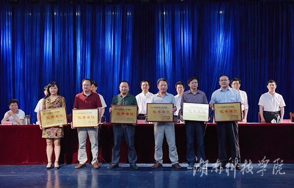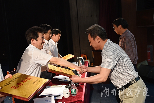 校领导为荣获2015年度教学管理优秀单位、获省级课堂教学竞赛二等奖以上教师现场颁奖。