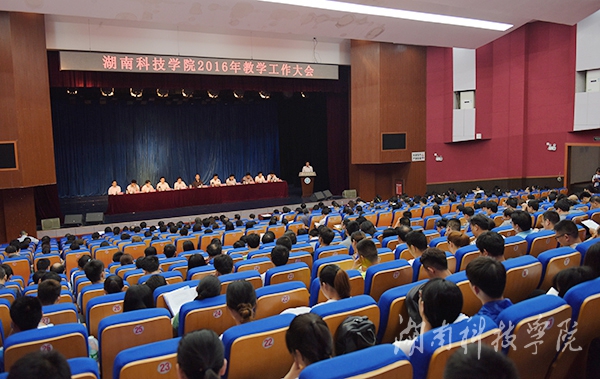 本网讯(记者 邓肖华 曾霏霏 摄影 何帅文)为进一步推动学校转型发展,5月7日,2016年度教学工作大会在尚美楼演播厅召开。湖南省教育厅党组成员、副厅长葛建中,湖南省教育厅高等教育处处长唐利斌到会指导,校党委书记陈弘、校长曾宝成及在家校领导出席会议。会议分别由陈弘、曾宝成主持。副校长李常健作题为“围绕‘四个转到’,深化教学改革,全面提高人才培养质量”的教学工作大会报告。曾宝成作了题为“全面发力,突出教学工作中心地位”的讲话。