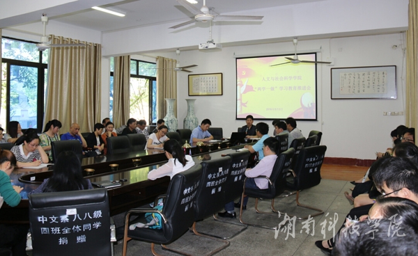 人文与社会科学学院党总支5月3日召开“两学一做”学习教育推进会,强调每一个党员要结合生活与工作实际做到:坚定理想信念,树立“四个意识”,严守政治纪律政治规矩,勇于担当作为,铭记党员身份,自觉按照党员标准规范言行。教师党员纷纷表态,表示要在各自岗位上发挥先锋模范作用,用实际行动践行“两学一做”,推动学院教学、科研、管理服务等各项事业的发展。