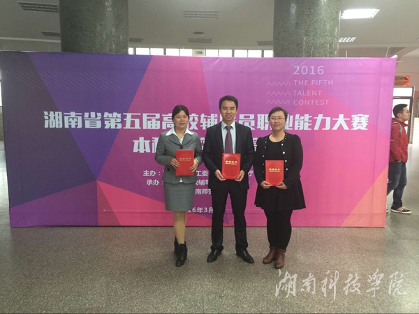 本网讯 近日,从湖南省第五届辅导员职业能力大赛决赛现场传来喜讯,我校参赛队伍获团体第六名,经济与管理学院王君老师获个人二等奖,电子与信息工程学院段元梅老师和理学院刘铮老师分别获个人三等奖。