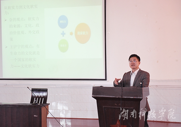 报告中,胡键指出,文化软实力是以有生命力的文化为基础的影响力、感召力、亲和力,文化软实力不仅可以塑造一个民族的品格,而且也是促进社会经济持续健康发展和提升经济发展内涵的重要工具。他从什么是文化软实力、永州为什么要打造文化软实力、世界著名地区如何打造文化软实力、永州打造文化软实力有哪些资源及如何打造永州文化软实力五个方面,以生动形象的数据和案例对文化软实力进行了深入透彻的分析和阐释。他认为,当前永州正处于经济发展方式的转变期,要及时调整产业结构,提高经济发展质量,全力打造永州市的文化软实力,以便在产业上对接国家“一带一路”发展战略。