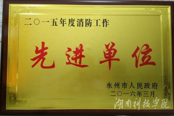 我校获永州市2015年度消防工作“先进单位”(图)