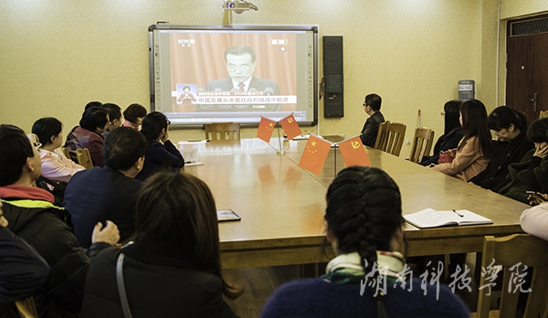 本网讯 3月22日至25日,学校各直属党总支和机关党委各党支部利用政治理论学习时间组织广大教职员工通过收看两会实况转播、报道、讨论、座谈、撰写心得等方式认真学习讨论李克强总理《政府工作报告》等全国两会精神。