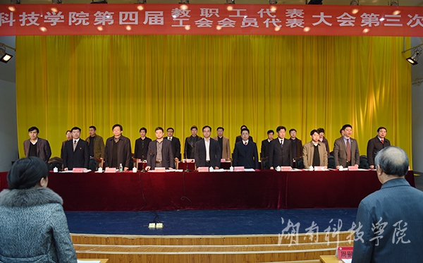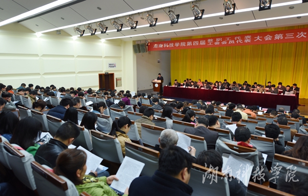 本网讯(记者 裴滢 刘忠奇 刘禹希 摄影 何帅文)3月26日上午,我校第四届教职工代表暨工会会员代表大会第三次会议在尚美楼二楼演播厅开幕。两百余名会议代表、特邀嘉宾、列席代表齐聚一堂,共商改革发展大计。本次大会应到代表155名,实到代表141名,因事因病请假14人,符合法定人数。