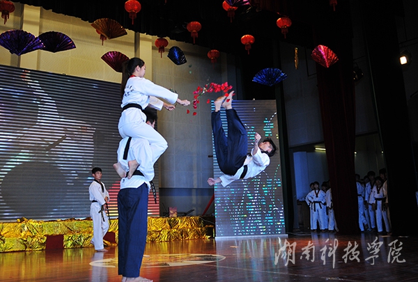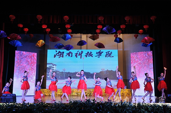随之而来的《歌曲联唱》中空灵动听的歌声又给大家带来了一丝清新之感;由各学院辅导员老师带来的表演《我爱余则成》以激情洋溢的面貌展现了湘科院“师者大爱,润物无声”的精神,老师们的精彩表演得到现场欢呼阵阵,一时热闹非凡;音乐与舞蹈学院带来的舞蹈情景剧《大山支教》则感人至深,让在场观众们无不为之动容;荣获湖南省舞蹈比赛金奖,载誉归来的拉丁舞《魅影》以其动感的旋律,曼妙的舞姿让观众眼前一亮,引来观众的阵阵掌声。跆拳道协会则以后旋踢,抗击打等跆拳道动作向同学们展示了跆拳道的威风。爵士舞《不能忘却的记忆》和歌唱节目《洪湖岸边是我家》同样给大家带来了绝妙的视听盛宴。晚会在《美在永州》的演唱中画下完美的句点。