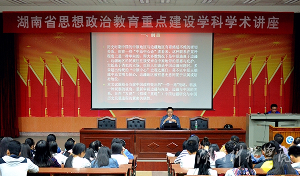 本网讯(记者 裴滢)10月9日晚,中国社会科学院中国边疆研究所马克思主义与国家边疆理论研究室主任、副研究员,我校96级政史系校友冯建勇来校讲学,开启思政湖南省重点学科学术讲座第一讲。马克思主义学院院长廖雅琴主持讲学。