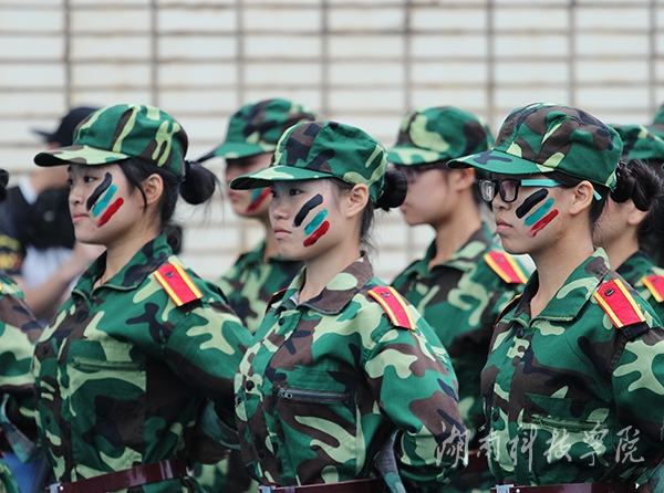 校领导陈弘、宋宏福、李常健 、吴小林、程智开、袁先友,校学工部、武装部部长唐华山及军训团副团长、武警永州市支队教导员周昌祥少校,军训团副政委、武警永州市支队政治处副主任谭杨亮少校在主席台就坐。大会由副校长宋宏福主持。