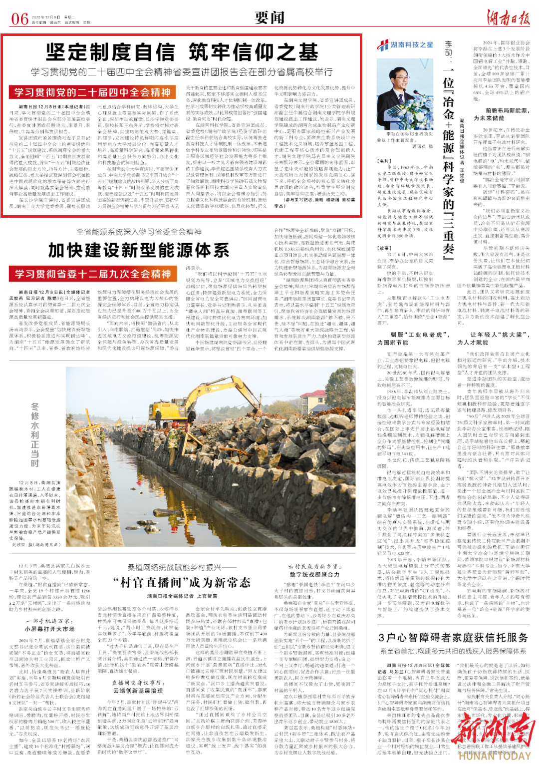 湖南日报:坚定制度自信 筑牢信仰之基@湖南日报要闻版头条