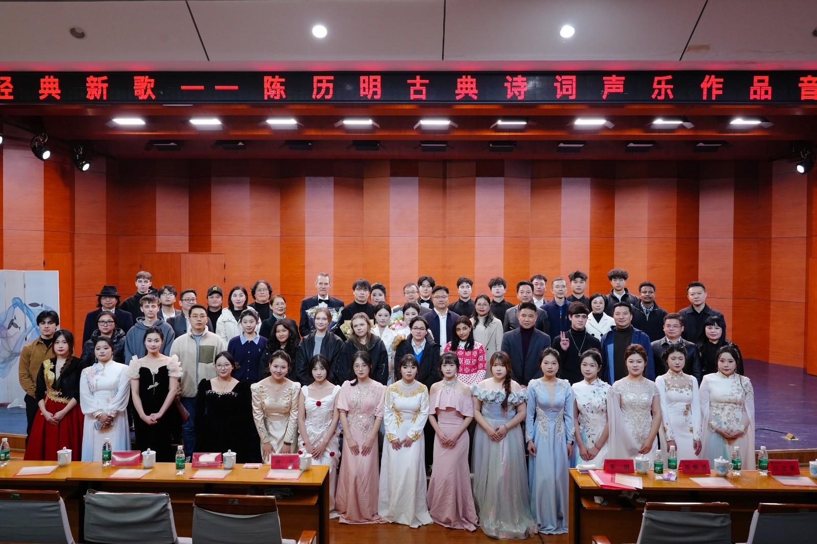 一直以来,陈历明都在思考如何让青年学子更好地赓续文脉、传承经典。作为跨学科专家,他认为孔子“兴于诗、立于礼、成于乐”的教育理念仍然具有当代价值,并结合自己的专业所长与研究兴趣,为自带韵律之美的经典诗词谱曲,不仅尝试把《岳阳楼记》等诗化散文和昆明“大观楼长联”等写成流行音乐,还在创作中巧妙借鉴湖南花鼓调的韵味、陕北信天游的悠扬,西方华尔兹的欢快等元素,既尊重历史文脉,又贴合当代审美,让古典诗词在现代音乐语境中焕发出新的生命力。